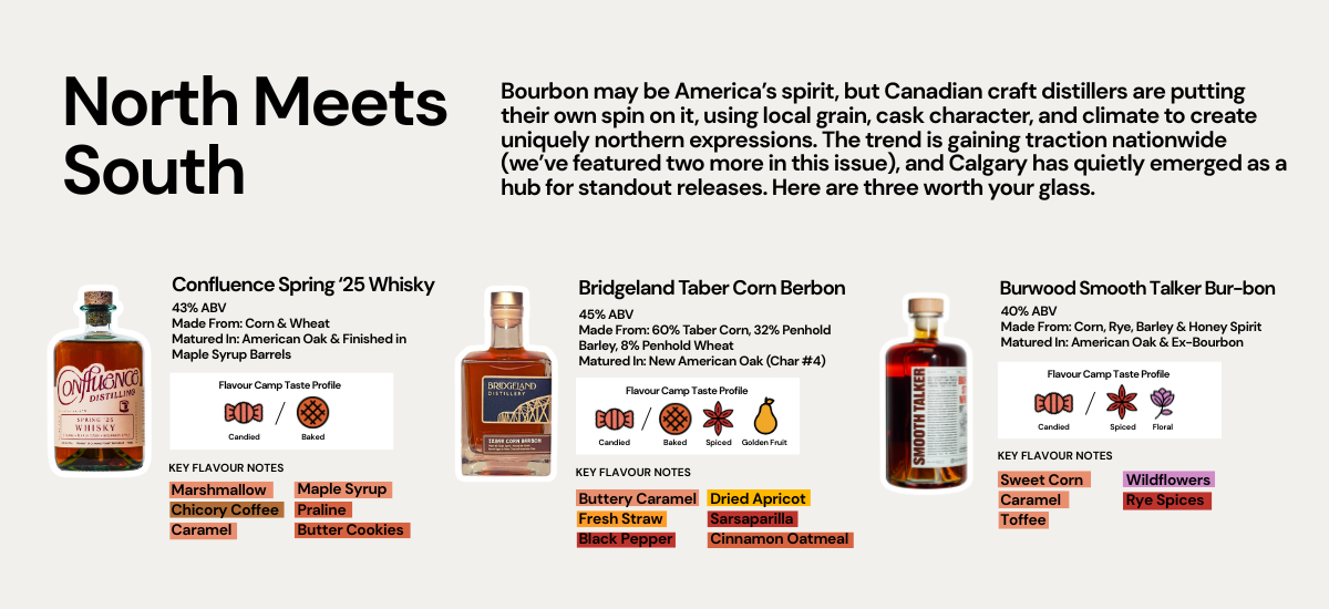 Calgary’s distilling scene is, for the most part, still in its infancy. Aside from Alberta Distillers, the quiet titan of rye whisky, the rest are newcomers, finding their footing by channeling Alberta’s agricultural wealth and extreme climate into bold, place-driven spirits. And if imitation is the sincerest form of flattery, Calgary distillers are quick to nod to global whisky traditions: bourbon-style mash bills, single malt bottlings, 100 per cent rye expressions. But mimicry here always comes with a twist, whether it’s a maple syrup cask finish, an aged honey spirit marriage, or a quinoa mash bill. What unites them is the conviction that flavour here is inseparable from place, and that Calgary whisky deserves its own map.